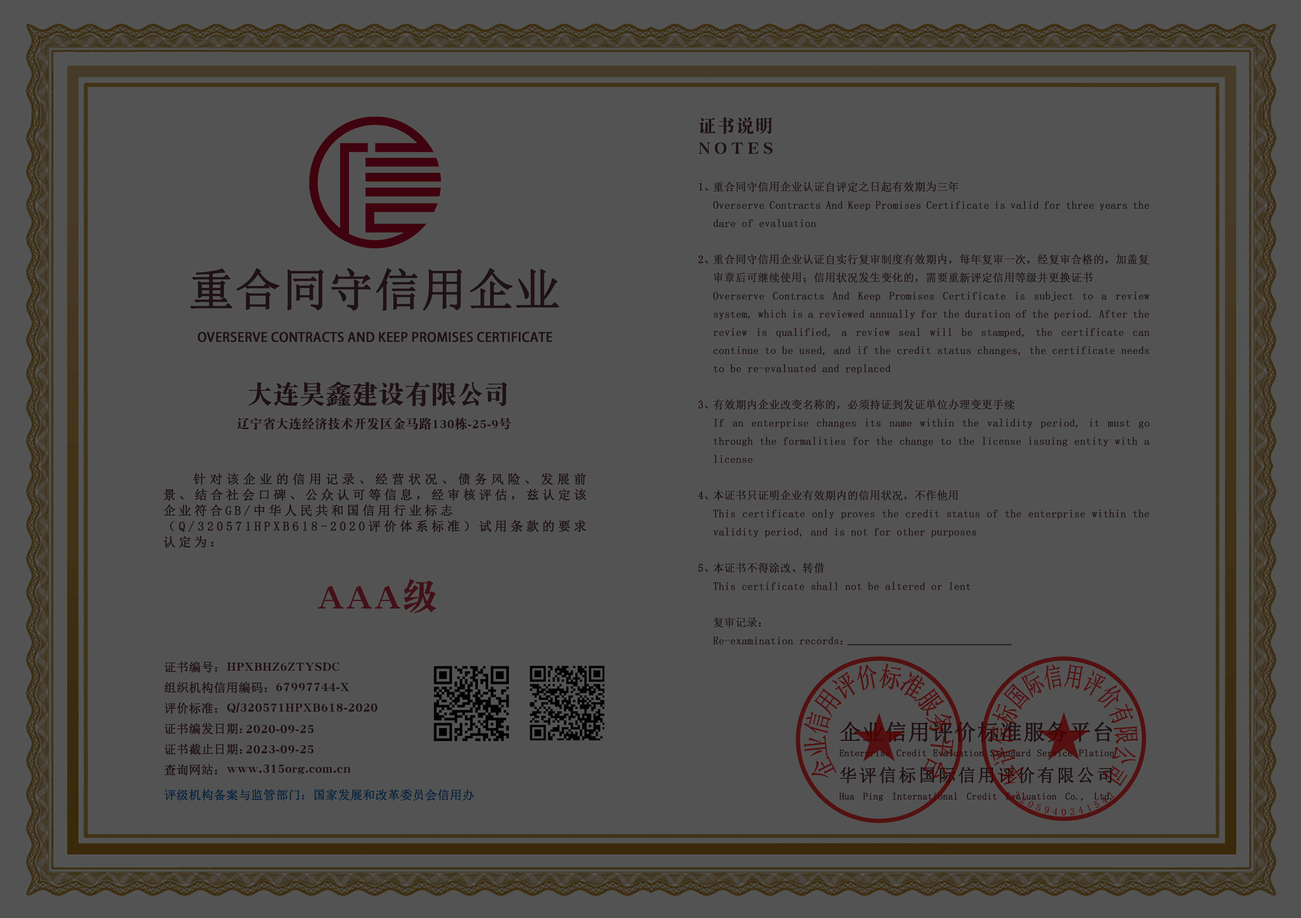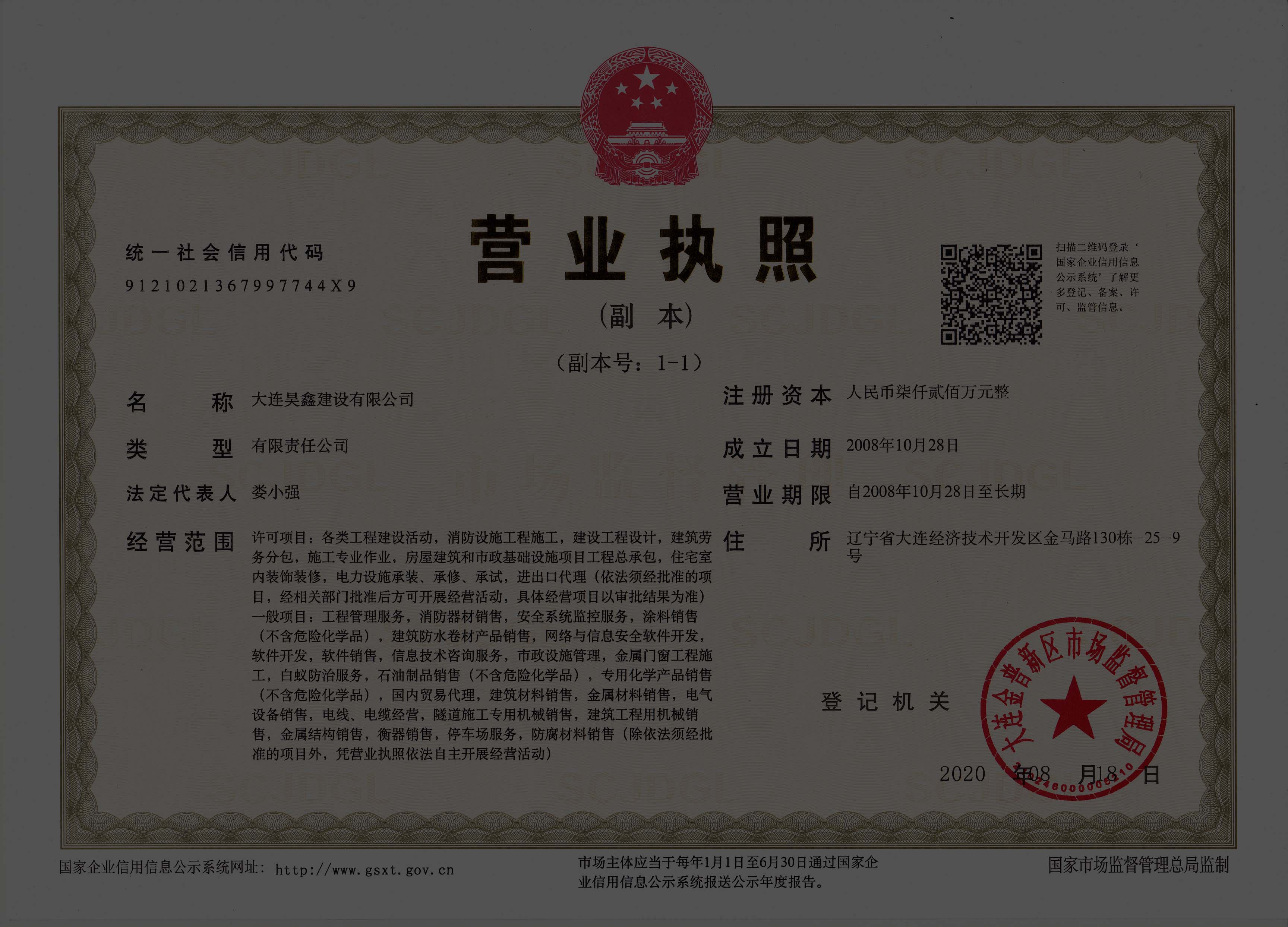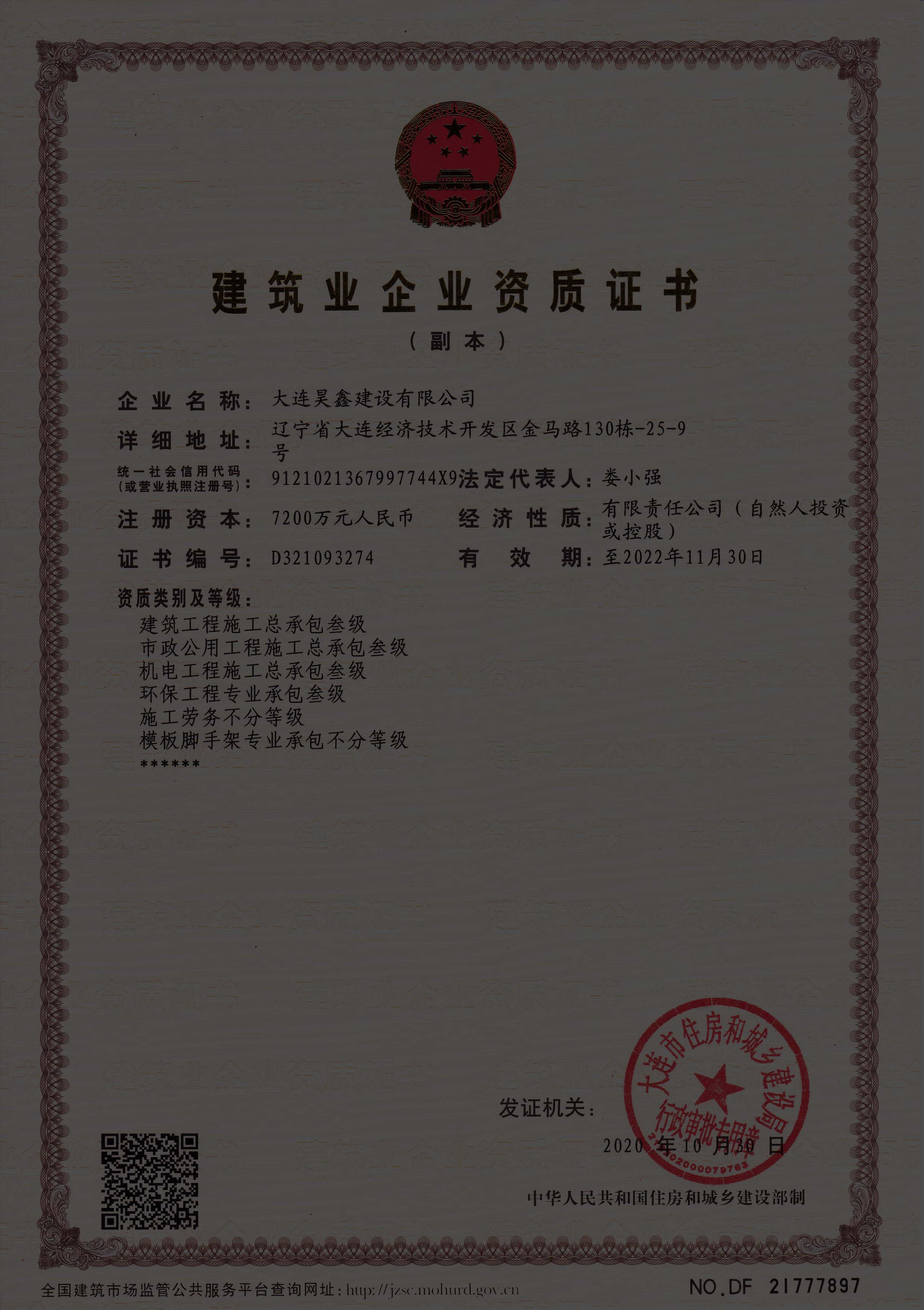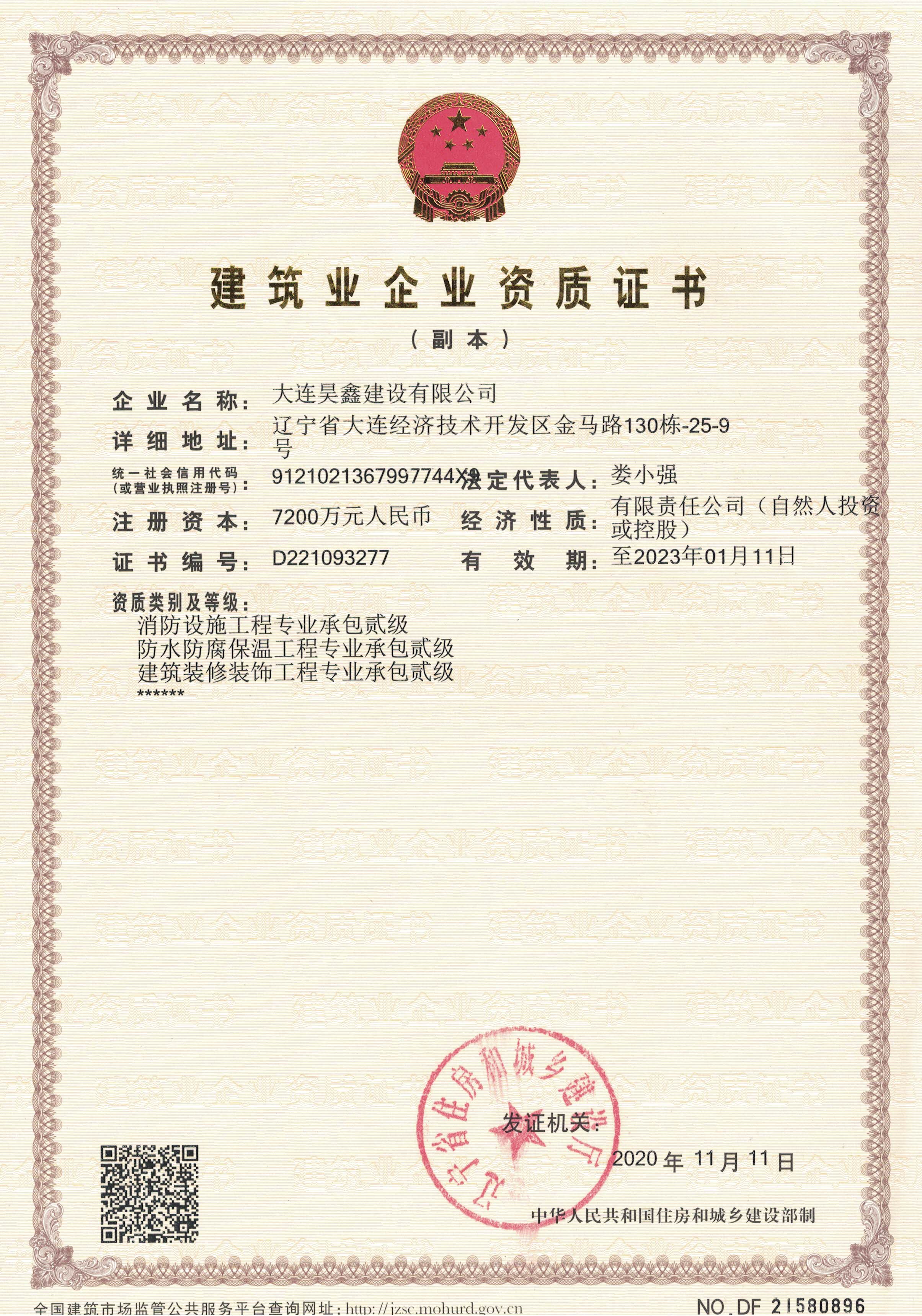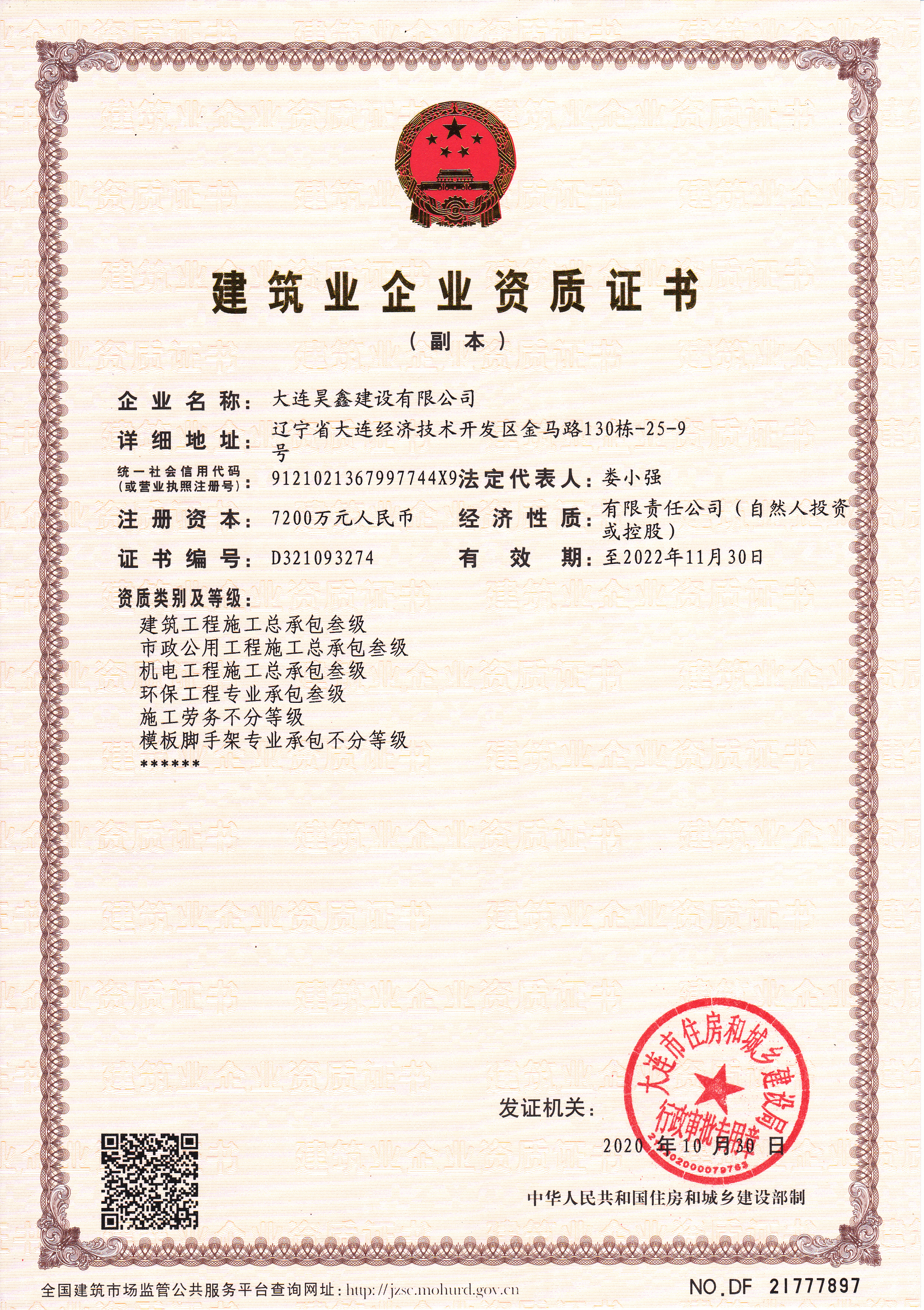 大連昊鑫建設(shè)有限公司珠海分公司。